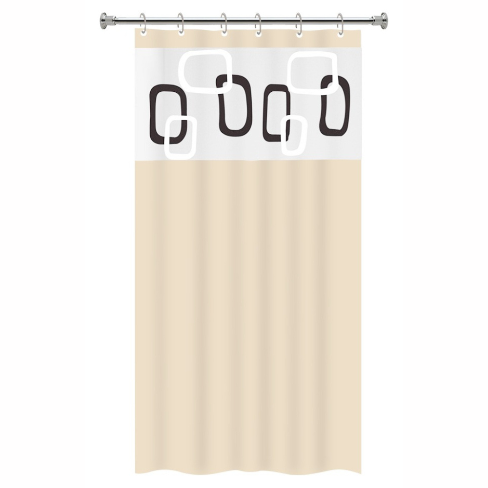 Cortina de box para banheiro confeccionada em PVC 100% impermeável, com viseira transparente e design geométrico que permite a entrada de luz, mantendo a privacidade e proteção contra respingos. Produto funcional, moderno e prático, ideal para banheiros residenciais e comerciais.